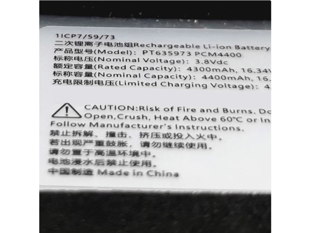 - Kapazität : 4300mAh/16.34Wh